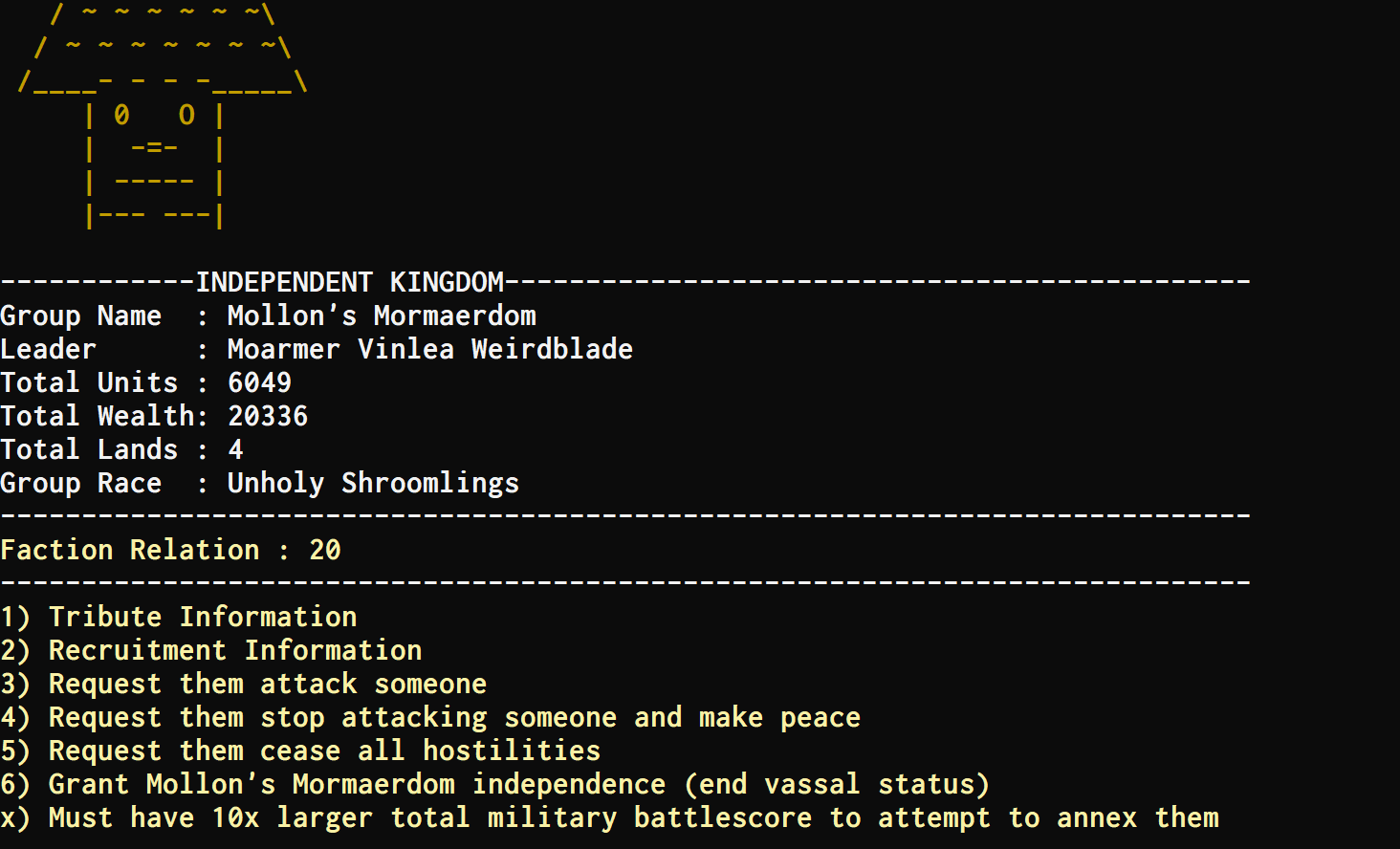 Plenty of good stuff here, now when Phenor rejects your peace it's way better, undead summoning event is improved, Blackmarket ruler statue is improved, and some great suggestions by Caccio, Defender, and Molovian!