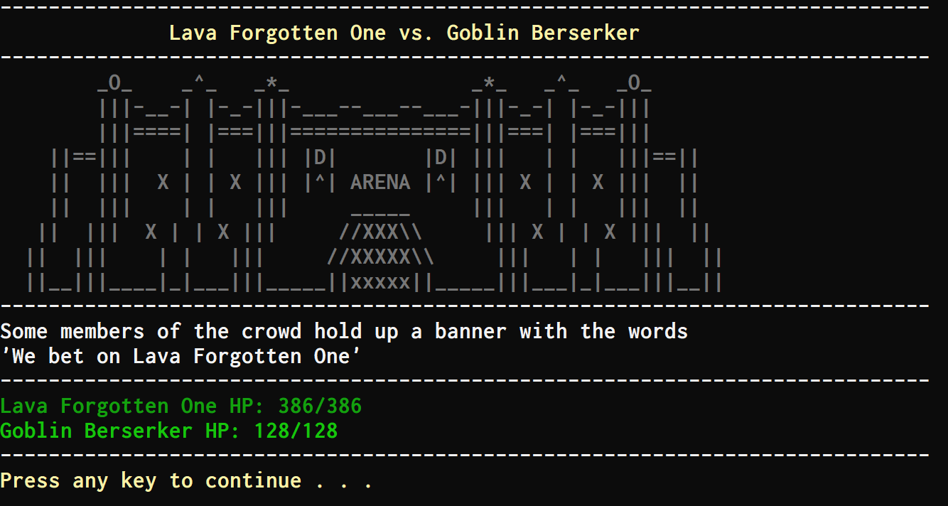 I went through the Arenas entire system and rewrote a lot of it, there are now 100s of new fight moves, scores of new sound effects and events, and a lot more randomisation and chaos.