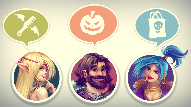50% discount on items in “New and Noteworthy” category: “Zomboteam”, "Red Hot Jalapeño Peppers", "Bats", "Skull", "Crafty Pumpkins" and "Terrible Clowns" smileys, sets of the Devil's Barber, Evil Barber and Demon Barber, Vampire's Set of Accessory and Horror Circus Vintage Chest;