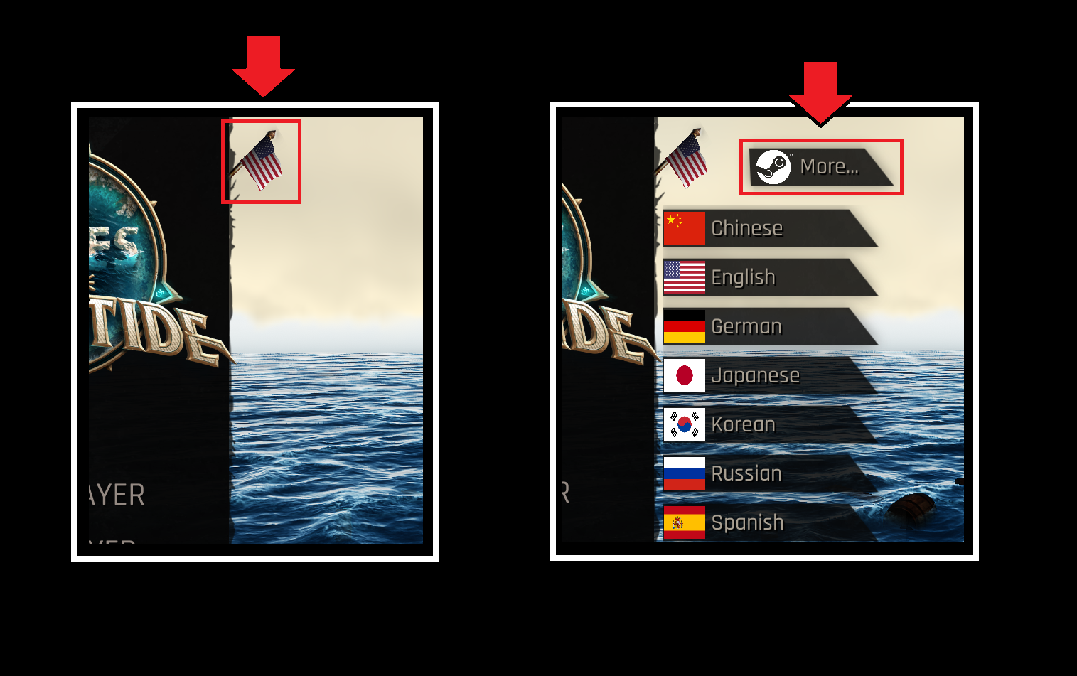 - Setup localizations, menu have a flag icon that can be clicked to bring up the localization menu showing all installed languages, as well as a link to translations that you can subscribe to on the workshop