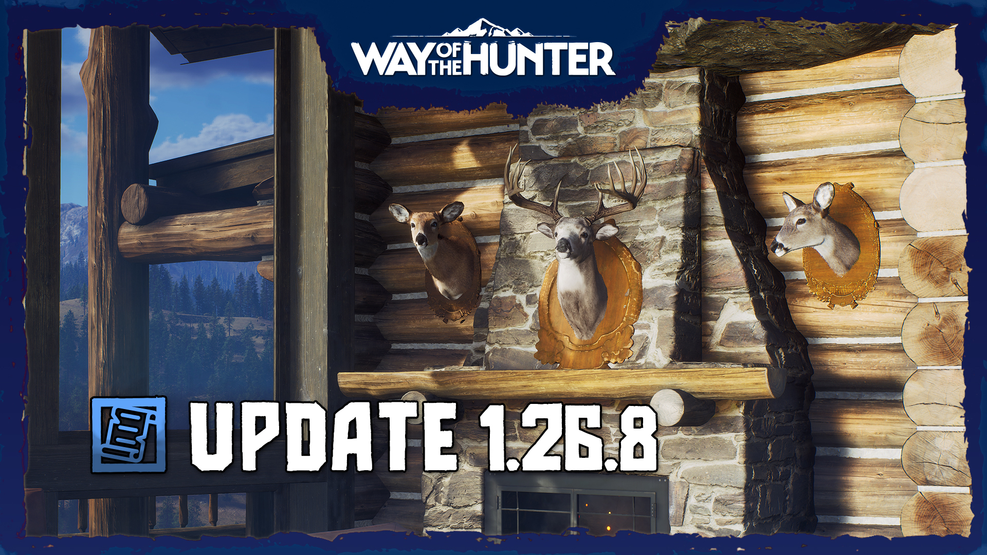 Update 1.26.8 is now live on all platforms. This update introduces new Albino rare furs for Sambar deer, Gemsbok, and Springbok, along with new antler variations for White-tailed deer. We’ve also added a genetic potential UI toggle and set ranger difficulty to OFF by default. Additionally, we’ve fixed some key issues, including the fast travel crash when entering the lodge with full taxidermy stands, the Objective Toggle bug. For more details, please check the patch notes below.
