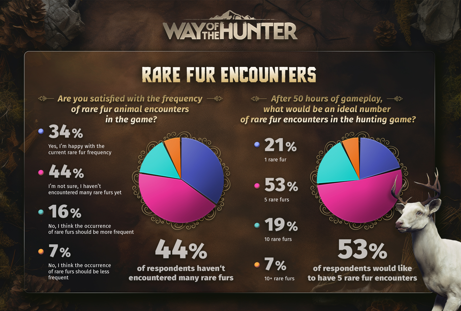 Most hunters agree, that 5 rare fur encounters after 50 hours of gameplay is the sweet spot. We’re committed to delivering more of these memorable moments.