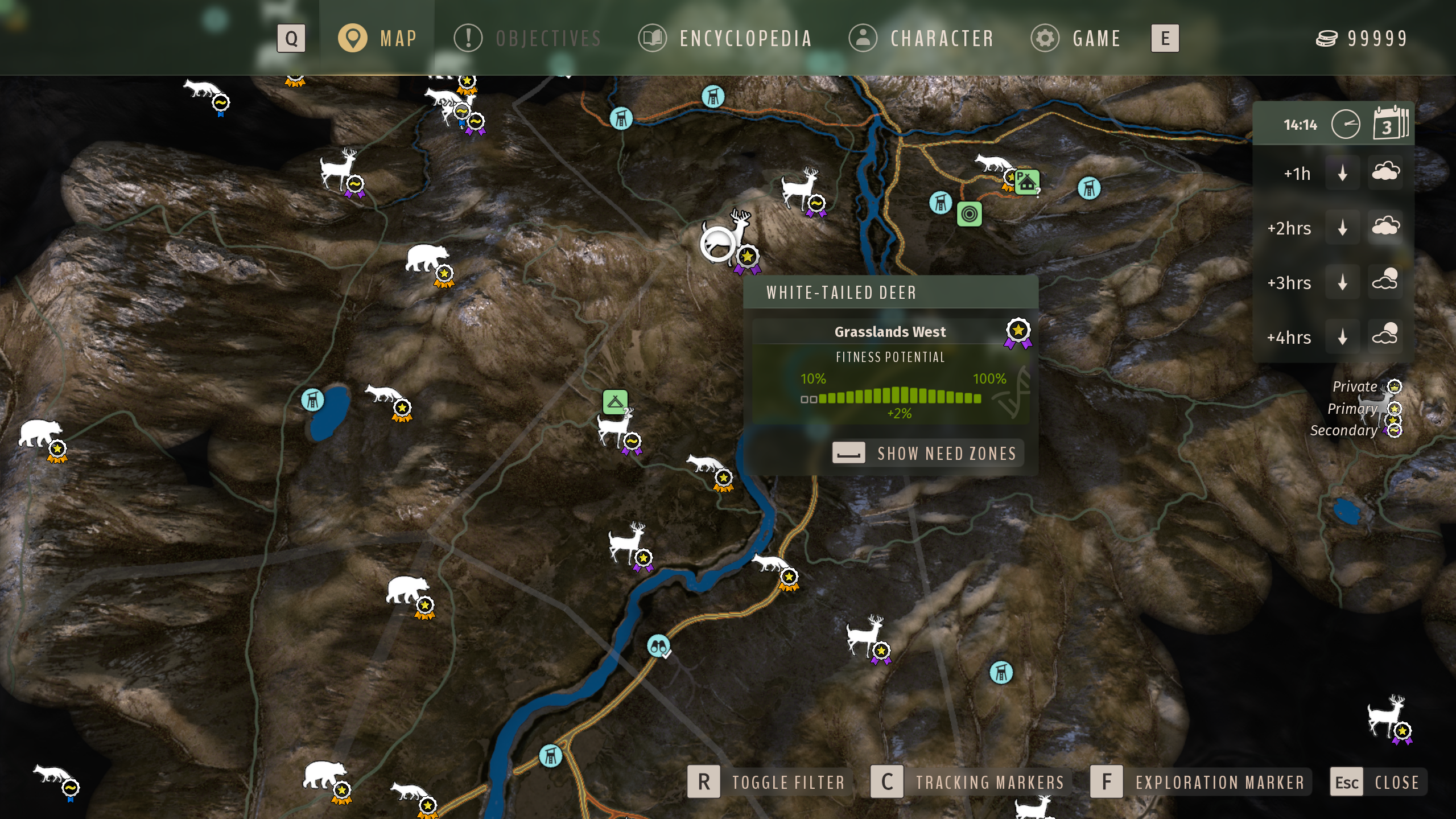 Animal groups in the Hunting map now carry a badge, denoting if they belong to a private, primary, or secondary habitat