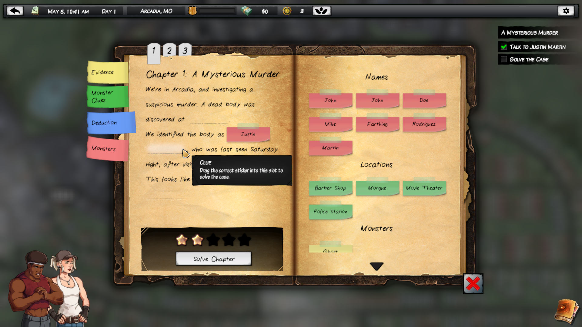 As you can see in the above screenshot, a case story now has three chapters, each new one unlocked when the previous one has been solved. This allows us to craft better stories without overloading the player right away.