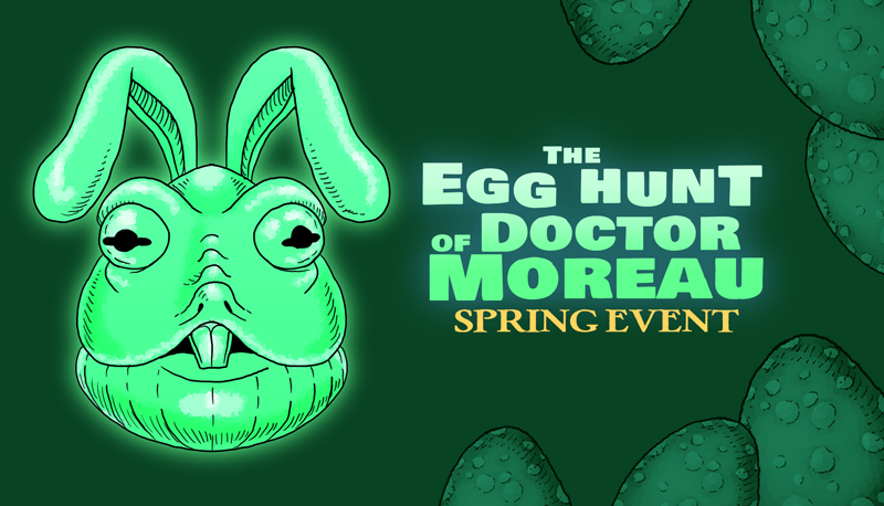 The Egg Hunt of Dr. Moreau Spring Event is here! Hunt for mutant eggs filled with hopping abominations, hats, and more!