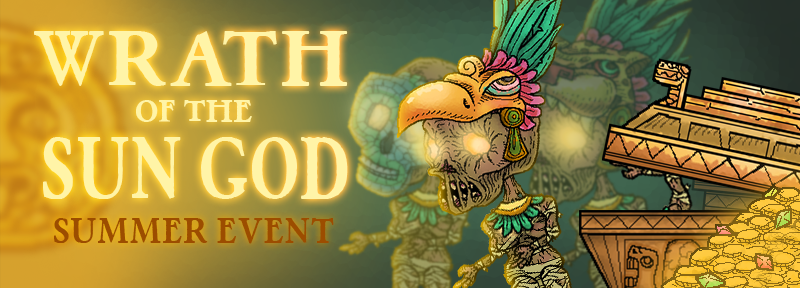 Legends say every Summer Solstice, the mighty Sun God awakens, and with Him the many Caskets of his followers rise from the darkest parts of the Earth! These Caskets are filled with many riches, and some will contain one of 4 pieces of beautiful and rare headwear, given to the Sun God as tribute. But beware, for there's a price to pay for waking the dead.. and they don't easily part with their riches. The Sun God will resume his slumber July 8th.