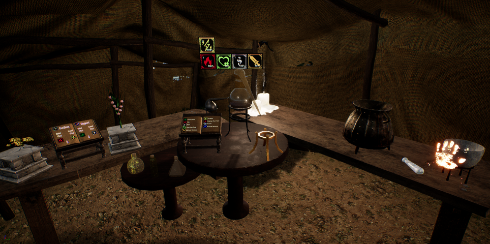 Step one in our alchemy overhaul is making sure that players know exactly what effects are being created from their recipes. For us the most important part was to keep the Alchemy System as menu – less and interactive as possible. After some experimentation we came up with Effect Indicators.