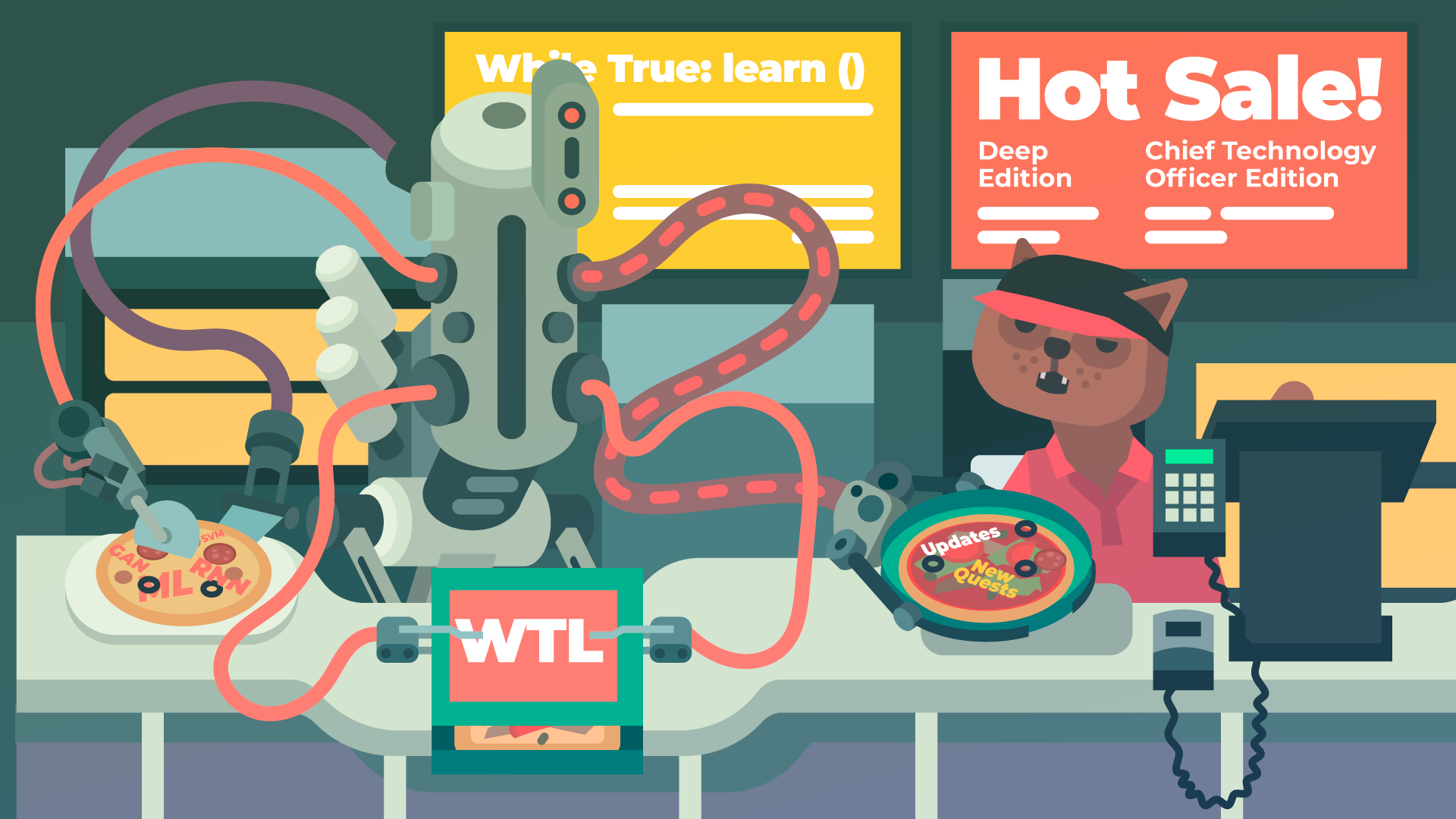 Machine learning! Cats in cool outfits! Self-driving cars! We've even got pizza and robots, combined in one place! Check it out: