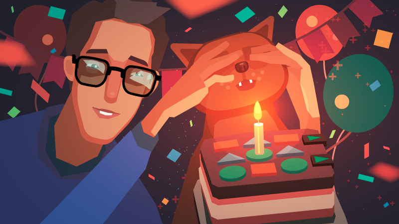 What a day! One year ago this tiny-crazy-cat-based educational video game was released. It was a really fun year! We'll never forget this journey from 86% to 92% review score. And we won a prize! This prize is a huge and super friendly, sharp and just amazing community.