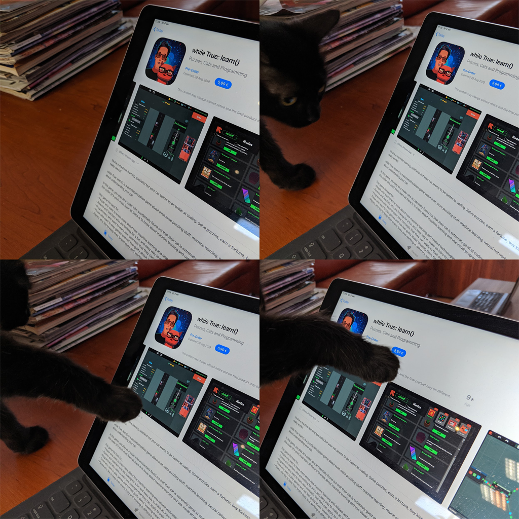 Speaking of which! We have presented iOS version of while True: learn() a couple of weeks ago, and now it's time to move on. Some of our team members are taking that long deserved vacation in September, but we'll still be thinking about what's next for our furry protagonist (and his cat).