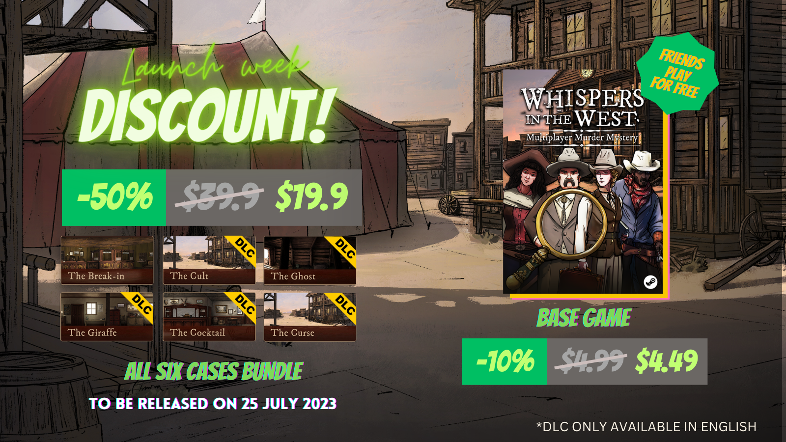 We're thrilled to announce that the wait is almost over! The highly anticipated launch of our game, Whispers in the West, is just around the corner. Get ready to embark on an unforgettable co-op experience this July!