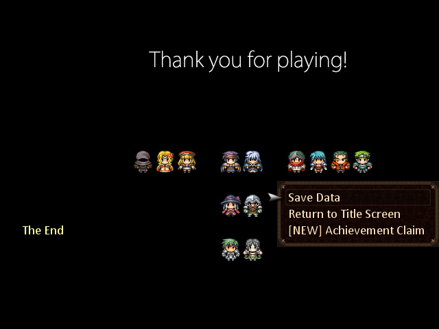 Changes to Existing Events - At both ending areas, it is possible to obtain the acheivements that have been added recently through a menu. This is so existing players will not have to replay the game fully.