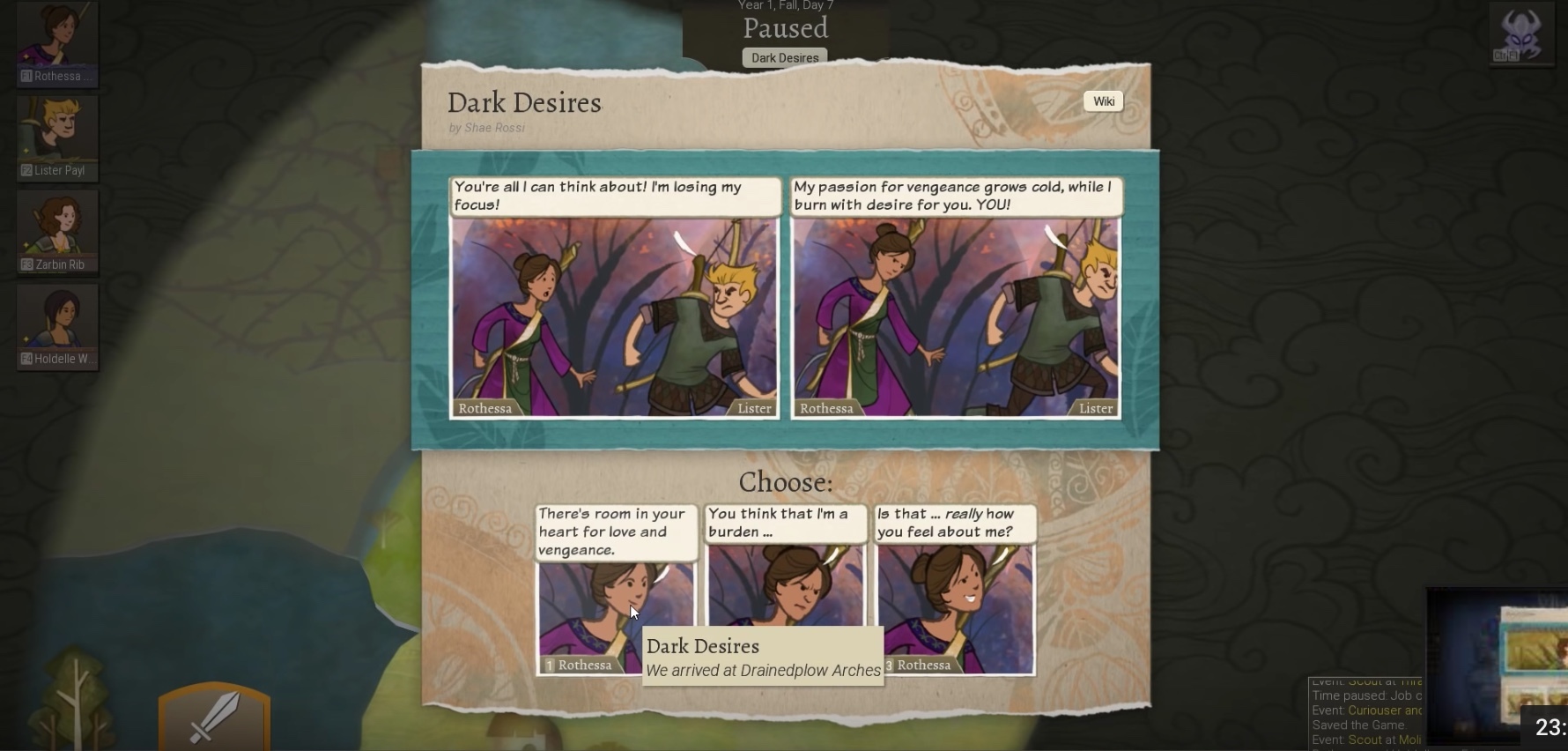 Are we building the right thing? Maybe this isn't what you want. Maybe it will take away from the sense of a story that you own completely, and make Wildermyth more like all the other RPGs out there? I worry about that! Maybe this will make the dynamic writing and procedural storytelling that we do less obvious, and will ultimately ruin the game? What if we have five villains, and when you play them all, you're done with the game? Maybe we'll want to preserve and/or even expand a "simulation mode" where there is no one set story?