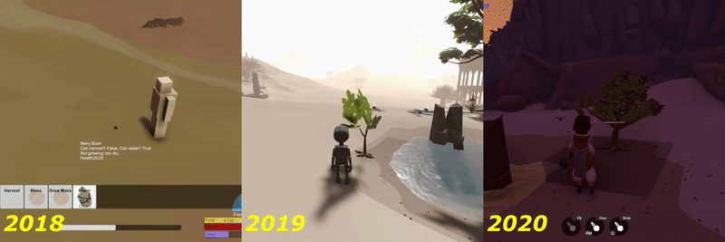 From there, we started to simulate plant life and growth to see if plants could take on lives of their own in a game. We created a small spring and a tiny oasis in the desert for ourselves to survive, garden, and bring life back to the world. From there, Wildmender was born.