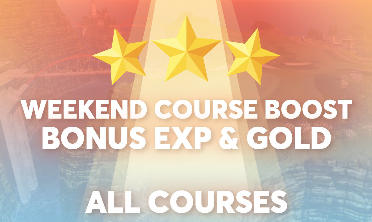 Starting on Friday and running until Sunday at Midnight PDT, we will be running a Weekend Course Boost Event! Gain Bonus EXP and Gold by playing on ANY COURSE throughout the entire weekend!