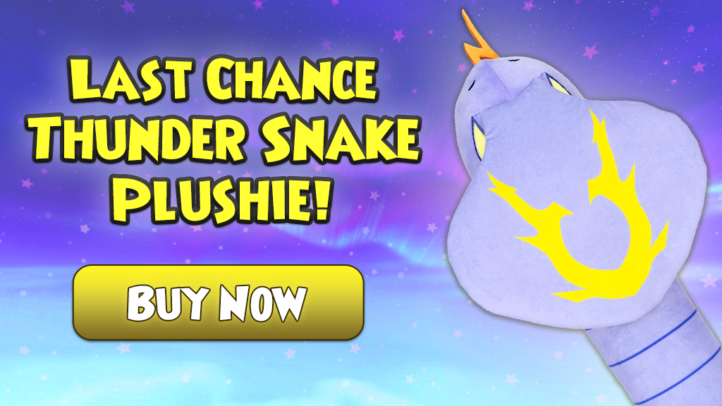 Only one week remains to pre-order your limited edition Thunder Snake Longboi Plushie! Don't forget, every order will receive a FREE code for 1 month of Membership and a Thunder Snake Plushie Housing Item!