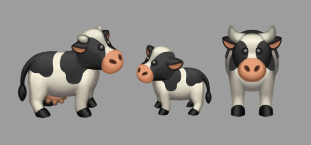 Two new animals can be adopted : cows and goats. For each you have a young, an adult male and an adult female model. Females provide milk, but only after having a baby.