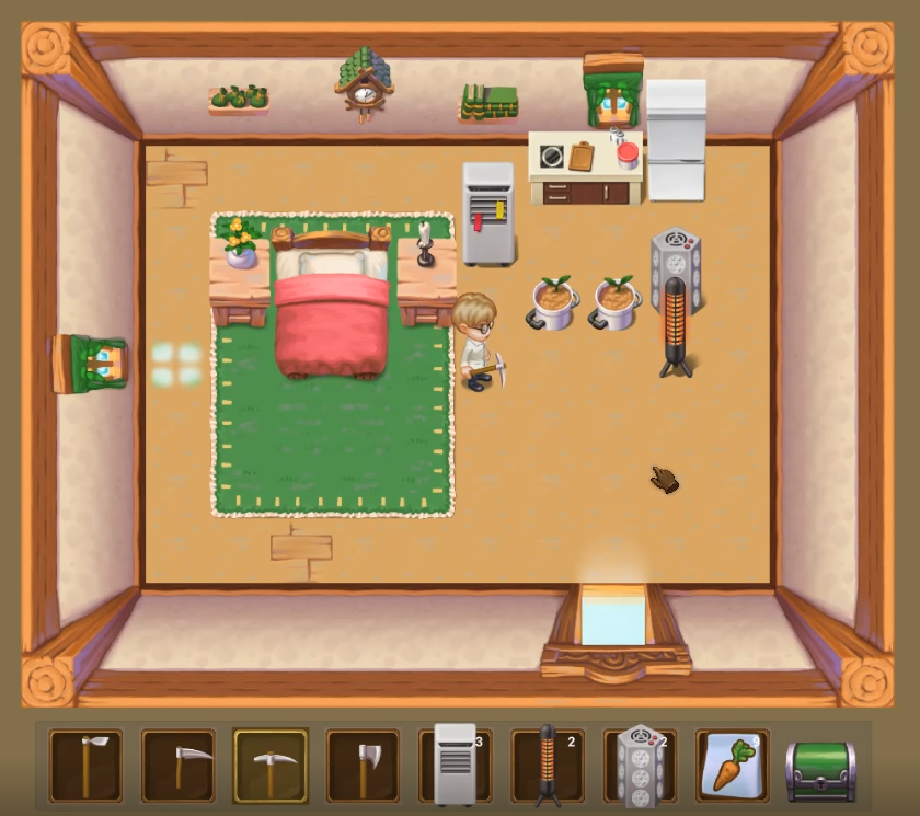 Buildings will include the chicken coop, a barn (with 2 new animals), a greenhouse and a multipurpose shed. This is pretty standard for farm sims, I’ll probably add some more exotic buildings and upgrades for the existing ones later. If you have suggestions, don’t hesitate to share in the comments.