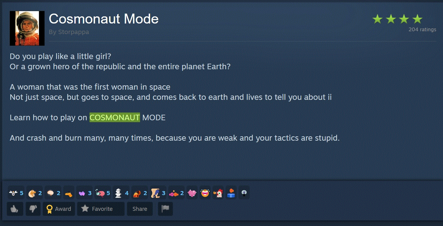 What is cosmonaut mode? Just describes the problem that the resources are not going to appear by magic, yes but we need a way how to resolve it in the game, to prevent this, sure I know it’s not realistic, but what other solution is there?