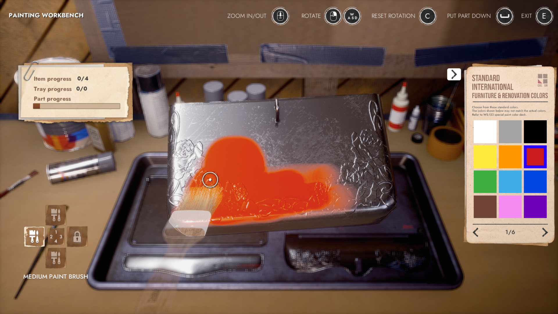 Gameplay changes: * Added more colors - expanding your choice from 9 to 72 vibrant colors * Added different sized brushes, medium and small - get more creative with painitng; the small brush allows painting in details (remember to hold the alt key to paint!) * Fixed hint bar not properly displaying on some workbenches * Fixed tools being visable during selection of the item part * Fixed Radio: now properly turns on and off * Added: skipping to the next and previous song * Added: selecting which tracks are played (from Options Menu) * Fixed lag that occurred sometimes on start of the next song * Fixed transitioning to a new day changing currently played song * Removed Parts counter on the Main Workbench during disassembly/assembly of an item * Improved music volume fall-off outside the workshop area (no more suddenly hitting "a wall of sound")