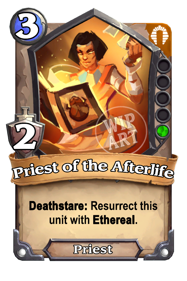 Who can have the strongest Medjay die and have the buffs land on either their fresh recruit or a 3 cost priest?