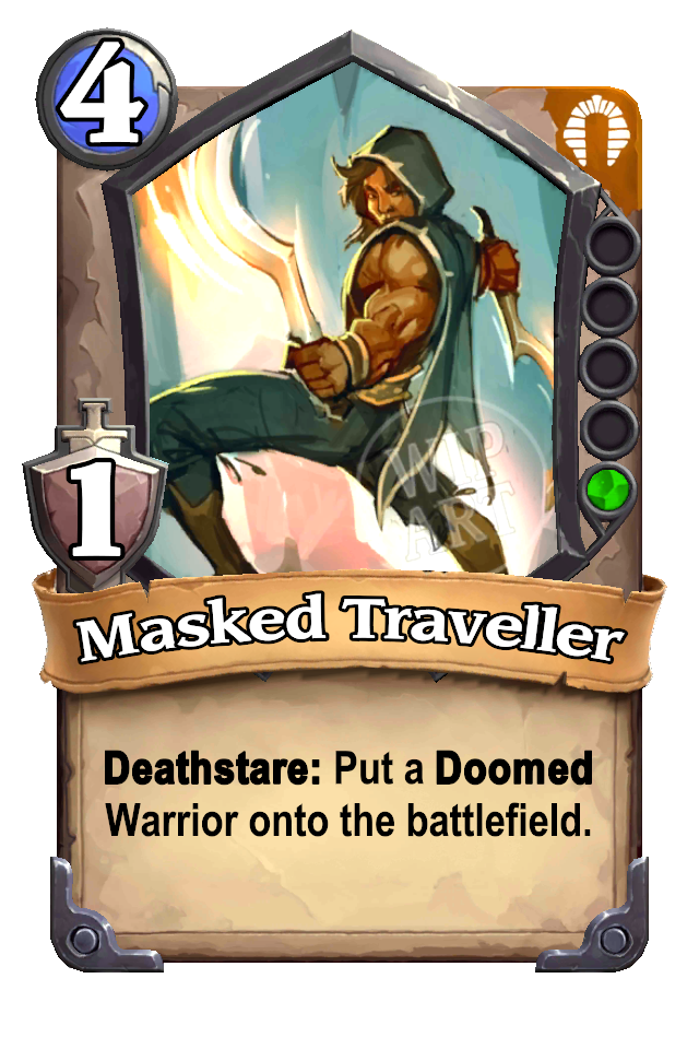 1. Fresh Recruit now has Ethereal 2. Burial Chamber now has Ethereal 3. Temple Militia OLD: "Gain 1 Power when you play an Upgrade." NEW: "Gain 1 Power when you replace an Upgrade." 4. Bastet OLD: "Pedestal: When you play an Upgrade, put a Temple Militia on your left flank." NEW: "Pedestal: When you play the first Upgrade each turn, put a Temple Militia on your left flank." 5. Multiple card fixes