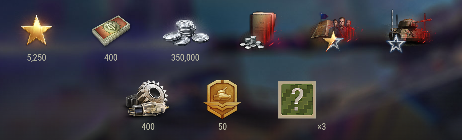 [table colwidth=""] [tr][th][p][/p][/th][th][p]EU (CEST/UTC+2)[/p][/th][th][p]NA (ET | CT | PT)[/p][/th][th][p]APAC (UTC+8)[/p][/th][/tr][tr][th][p]Start:[/p][/th][td][p]June 6 at 11:00[/p][/td][td][p]June 6 at 02:00 | 04:00 | 05:00[/p][/td][td][p]June 6 at 17:00[/p][/td][/tr][tr][th][p]End:[/p][/th][td][p]June 9 at 11:00[/p][/td][td][p]June 9 at 02:00 | 04:00 | 05:00[/p][/td][td][p]June 9 at 17:00[/p][/td][/tr][p]Prove your battlefield skills and climb the Leaderboard! All you have to do is play 15 Random Battles with Tier VI–X vehicles and earn the most base XP you can.[/p][p][/p][p]Top Rewards:[/p]