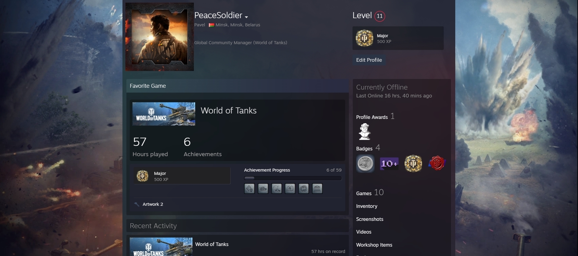 All in all, the Points Shop is a great feature that allows you to customize your Steam profile as you like and enjoy special-themed content connected with your favorite game. And that’s why we’re excited to tell you that World of Tanks now also has its own items in the Points Shop, with 3 profile backgrounds, 3 avatar frames, and 4 avatars (all of which are animated!). These items will help you decorate your profile in true tanker fashion. Here are a few examples of how this might look: