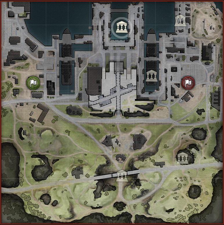 The arrangement of structures in the suburban area has been changed to make this area equally convenient for both teams