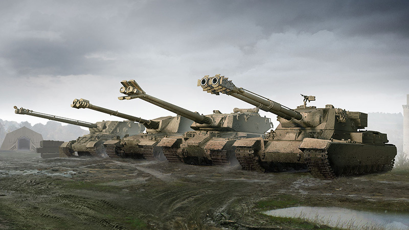 Explore a new line of four twin-barreled British heavies with the Selective Fire Modes mechanic. Make the most of their tactical flexibility: Switch between the precise Single Fire mode and the devastating Salvo Fire mode anytime and with ease! All the new tanks have excellent frontal protection, adequate mobility, great gun depression, and fancy exteriors.