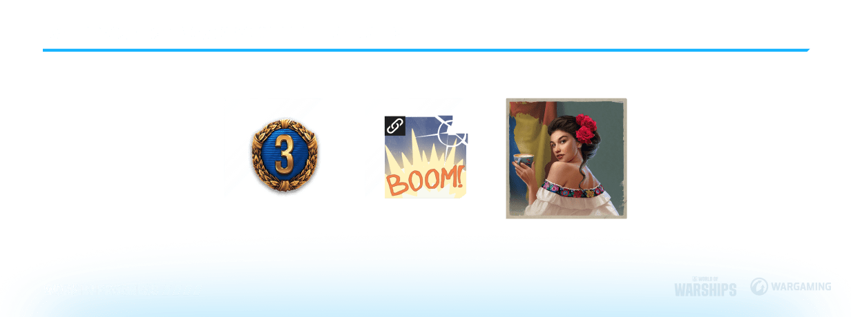 In the first progression line, you’ll find rewards such as 3 days of Warships Premium Account, the "Boom!” enemy destruction effect, and Commander Marina Carmen Fernández with an individual voiceover.