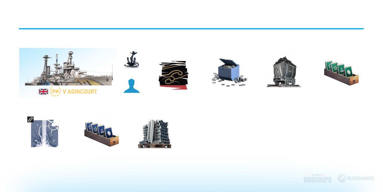 The second progression line, unlockable for 2,000 Doubloons, grants the Japanese Lacquer permanent camouflage for Mogami immediately and features Premium battleship Agincourt as its final reward.