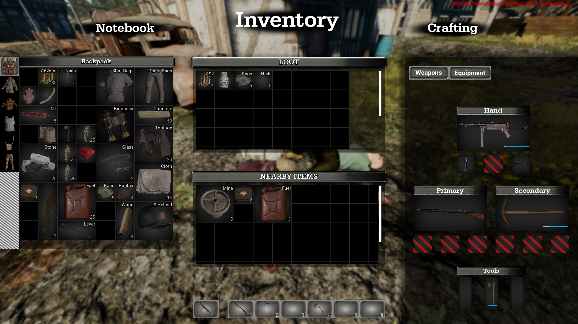 In the weapons section, you will be able to view the remaining durability of your weapons, quickly reload magazines, and add attachments. This design provides you with efficient organization and quick access to your survival and combat resources.
