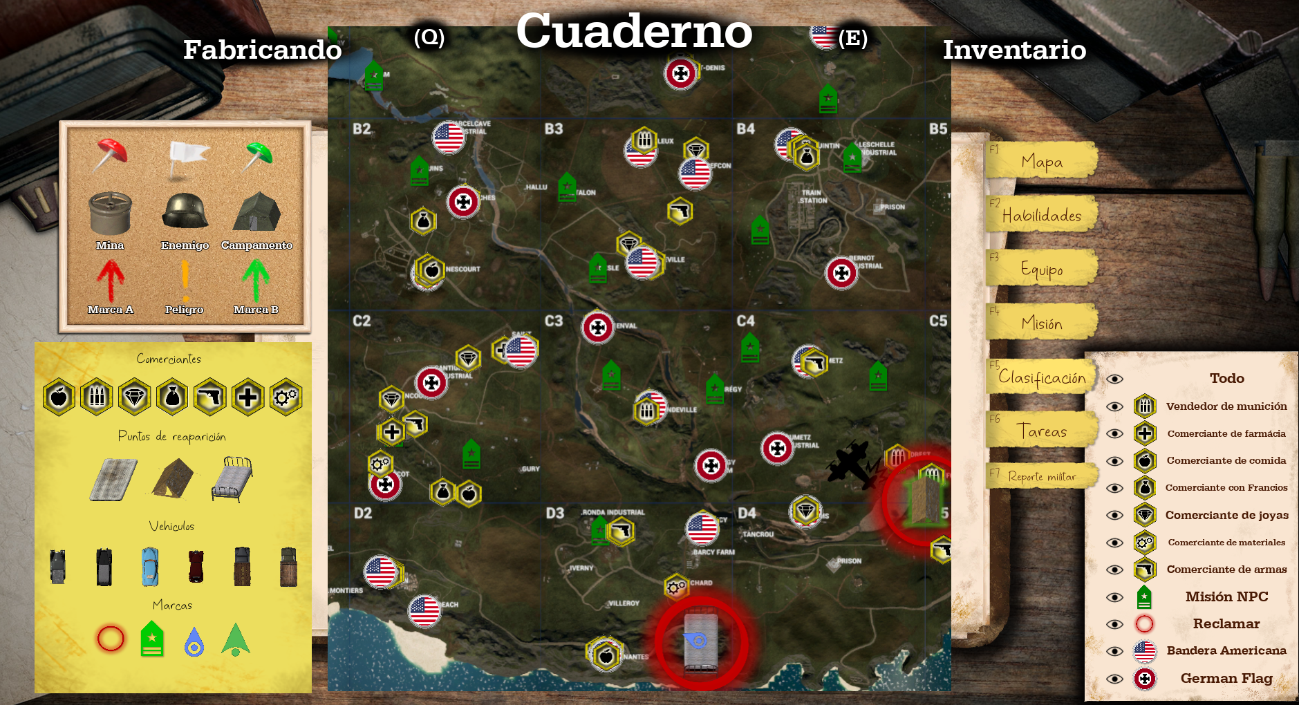 In this first section, your character has access to a detailed strategic map. Here you can interact by marking important zones for your survival strategy. The key innovation is that the marks you set are shared with your clan or military squad members, promoting collaboration and coordination in the game.