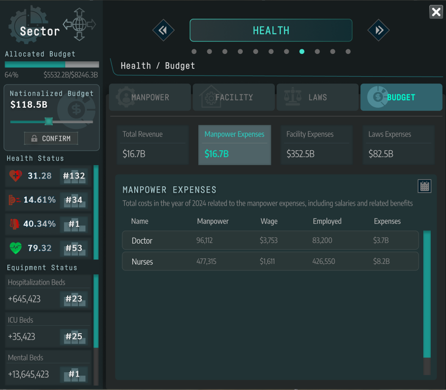 Sectors – Added a variety of new laws and policies and a new budget area to track individual expenses and incomes.