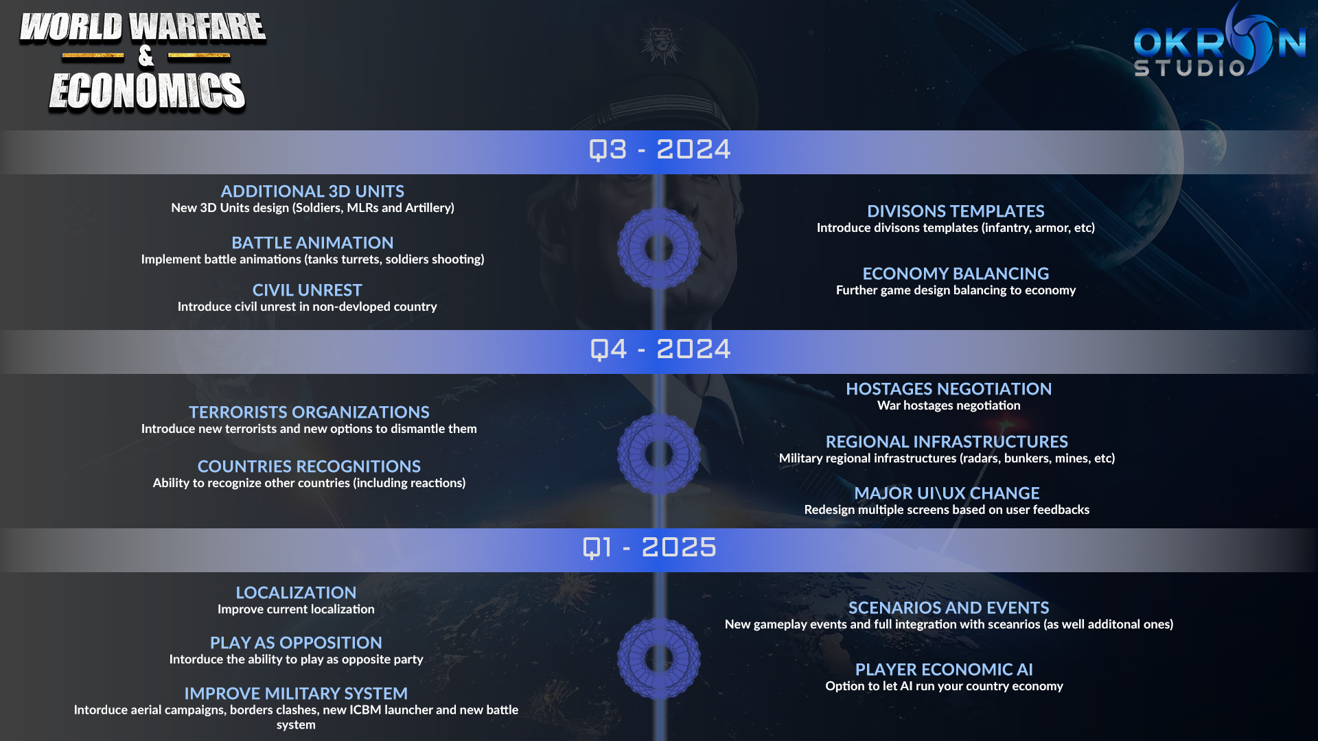 We know we’re not there yet, but every step we’re taking is bringing us closer to the game we all want to see. Countless fixes, balance tweaks, and new features are on the horizon, all aimed at making World Warfare & Economics the ultimate geopolitical simulator.
