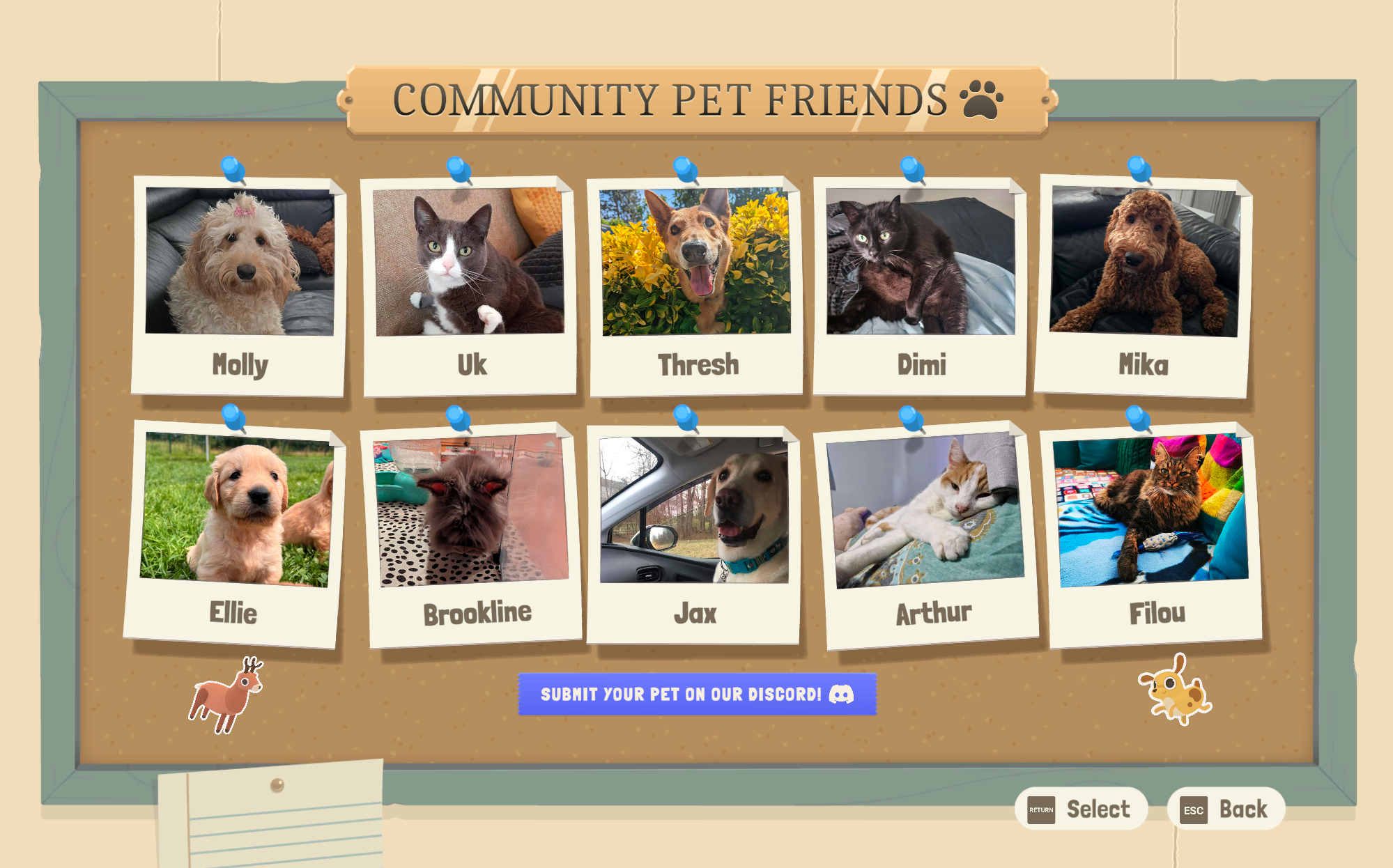 Want to see your pet in the game? Join our official Discord and submit your pet pictures in the pet-pictures channel. Check the FAQ or pinned comment for specific details.