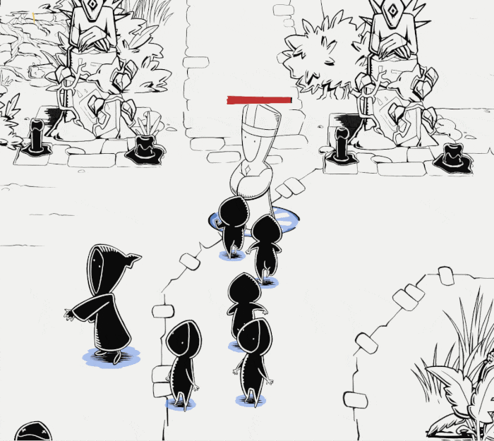 Followers are a multipurpose resource in Worship. During exploration, they will carry stuff, help you solve puzzle and interact with the world. They can even be used as a blood source to heal your Cultist.