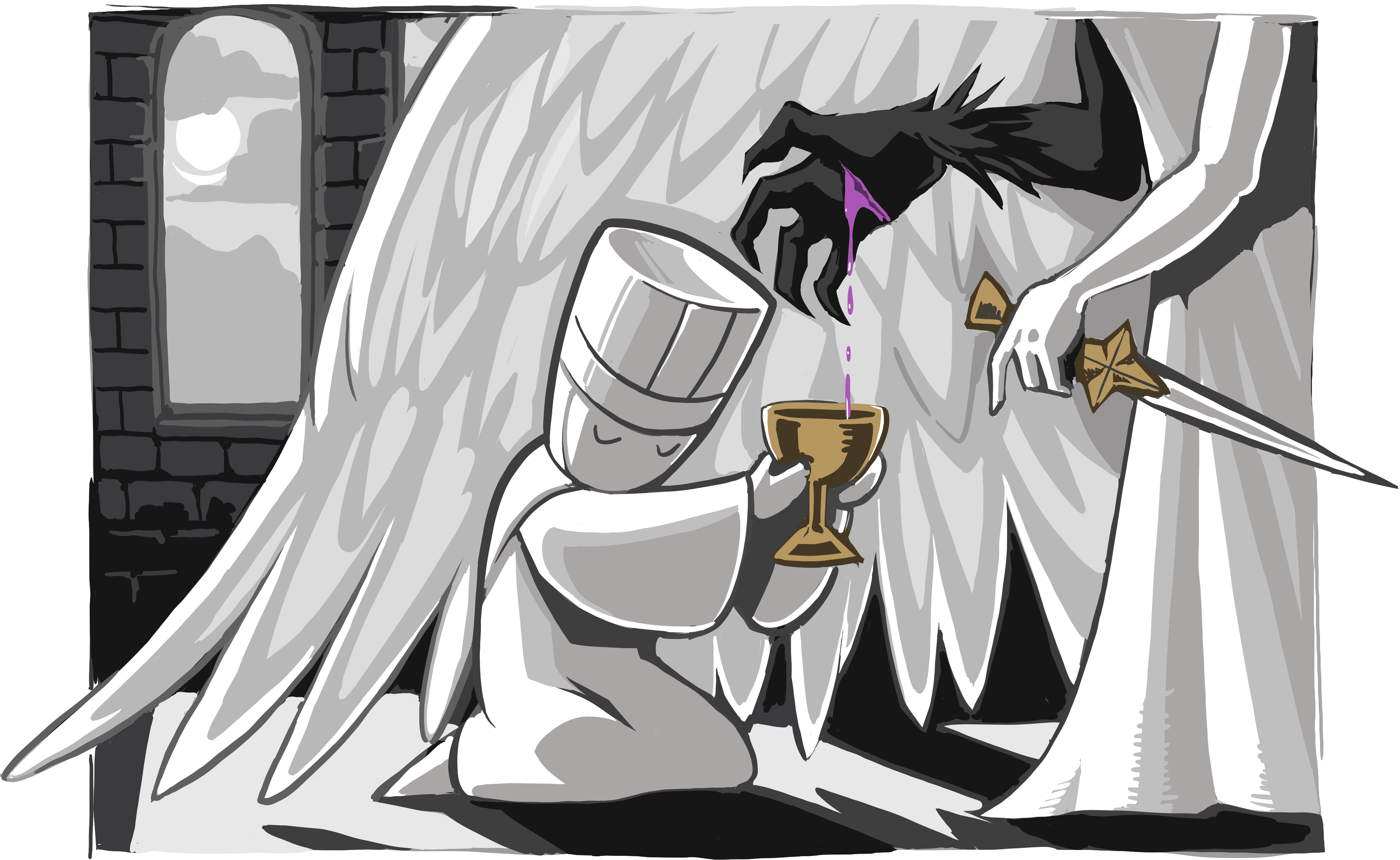 Through the blood of her so-called angels, the Deceit Weaver is able to bestow her devotees clad in white and gold with a glimpse of her powers. Within the blood of all four angels lies a fraction of Salithys’ abilities according to the aspect they represent: healing, control, power and illusion. In an act they consider sacred, bishops periodically collect blood from Valhyni and Nobilia. The amassed blood is then used in one of two ways to draw its eldritch properties.