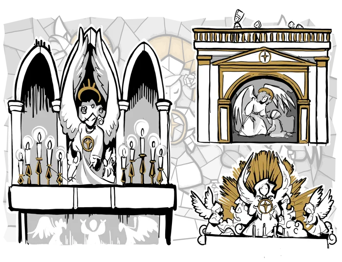 The blood can be refined into incense through a rigorous process known by few church officials. Inhaling mist produced by one of these “sacred” incense grants inhuman powers. This is how some bishops and church leaders can magically heal wounds and convert enemies into docile servants. However, the Church is aware of another dreadful property of angel’ blood. Drinking it triggers violent mutation on humans, turning them into brainless hulks of warped flesh. A terrifying hint pointing towards the true nature of these winged horrors. Following the guidance of their Goddess and its loyal eyes of the sanctum, the inquisition had no qualm in using this angelic blood property in inhuman experimentation on church enemies and servants alike. Executioners and other drudge created in this manner bolster the ranks of the Inquisition while some even more unsightly results of these experiments remain hidden as trump cards for decisive battles.