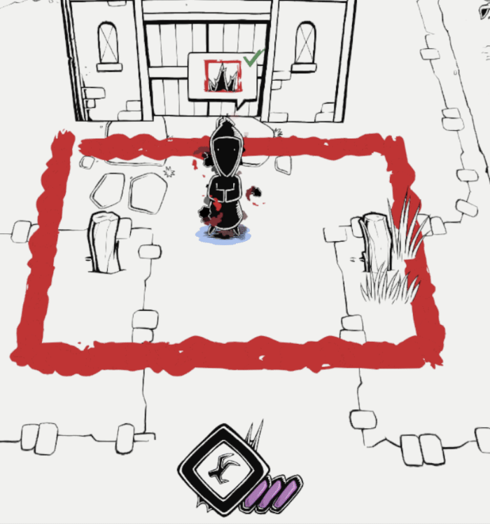 In terms of size, obviously, the bigger the drawing is, the bigger the amount of blood spent. Players will be rewarded by having certain aspects of the rituals scaling depending on the size of a shape. Obviously, for any area of effects, it’s easy to imagine why you would draw a bigger shape. For active effects rituals, we can scale it in different ways. For exemple, for the Ghastly Claw ritual, a bigger size will give a higher number of charges.