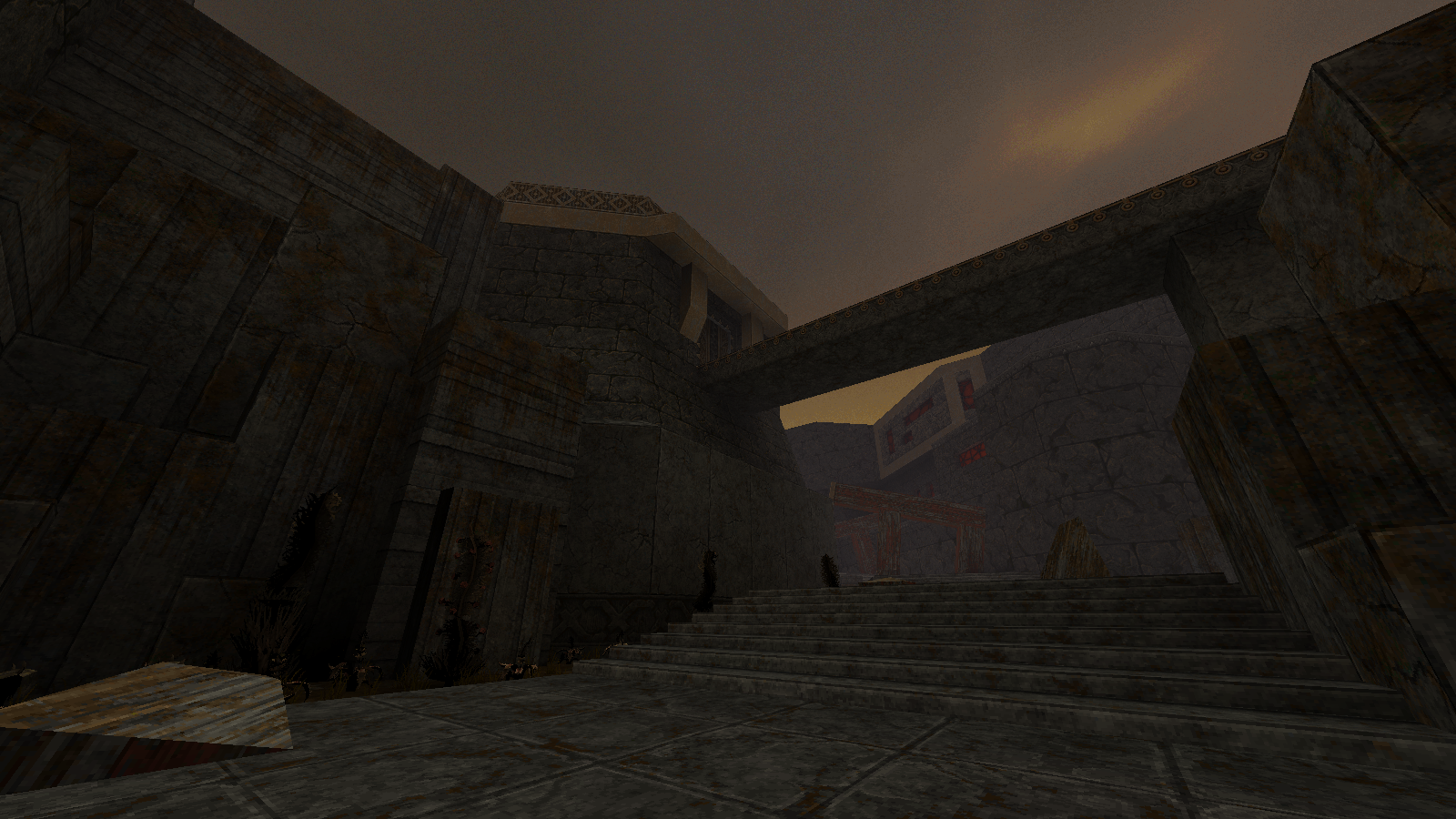 Today we'll be taking a look at the progress on two of our maps that are both in their end stages of development. These two maps are a part of Episode 2, namely E2M1, and E2M5. With the first being a temple complex below the dunes of the Eventide Wastes, and the latter being a temple in the skies, we hope you’ll enjoy the latest visual revisions: