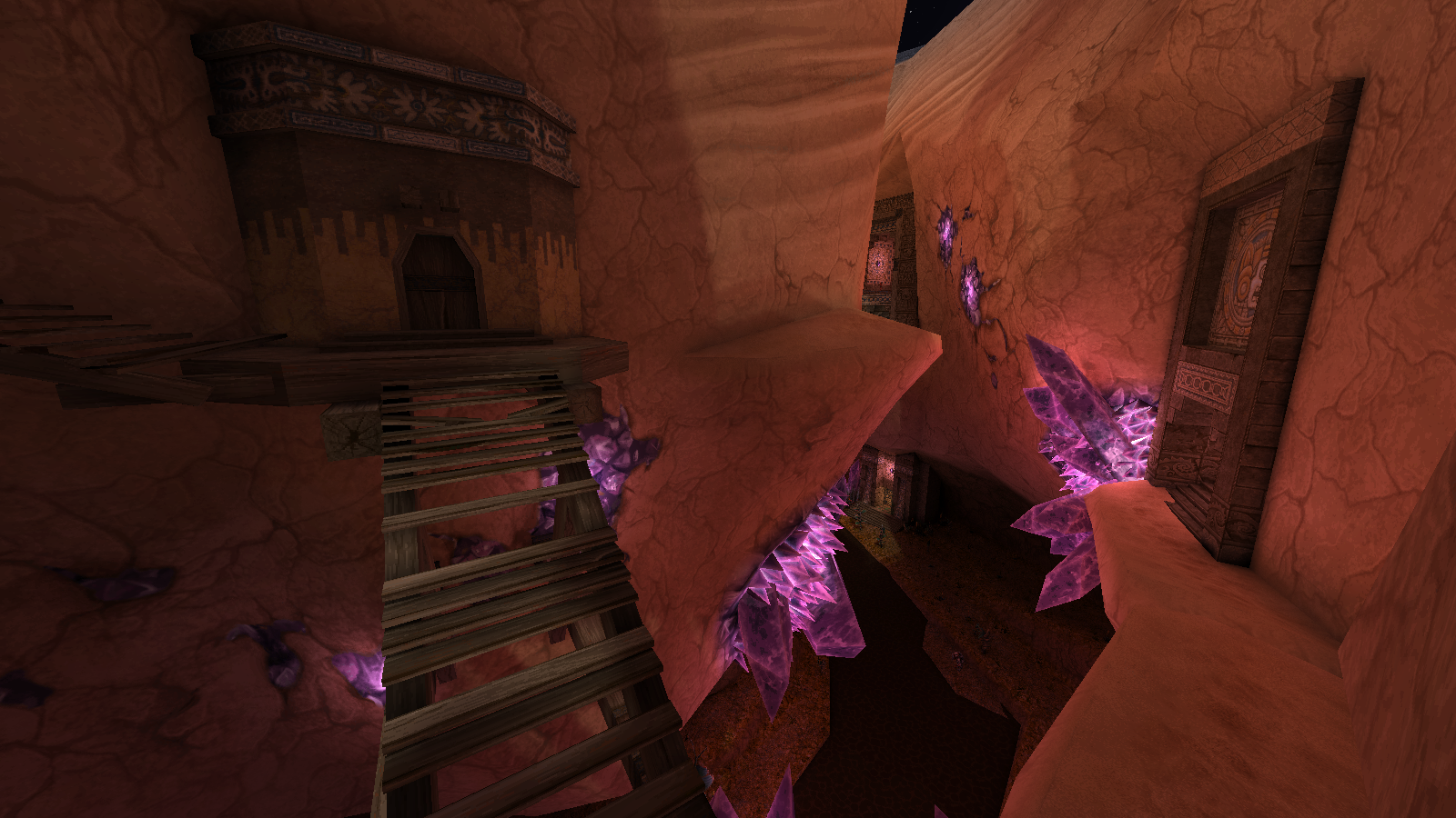 E2M1 has received its detail pass, which includes trims, texture adjustments, gameplay adjustments, and other polishing detail enhancements. Now that its visuals are complete with a gameplay pass, we’ll be playtesting with QA to check for any other revisions. Take a look at some sections of the Crystal Dunes: