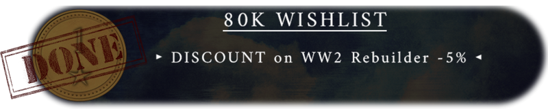 We reached a goal of 80 000 people wishlisting WW2 Rebuilder - we'll get you a 5% launch discount on WW2 Rebuilder!