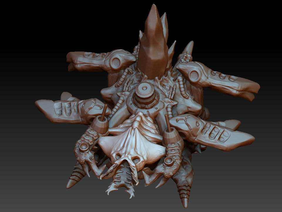As you can tell, initially we wanted the core to look entirely different. At first, it was supposed to be consistent with the fleshmachine design, just like our towers and the fighter. With the introduction of the new, energy-based style, we began the search for the design that satisfied us. It was a long road.