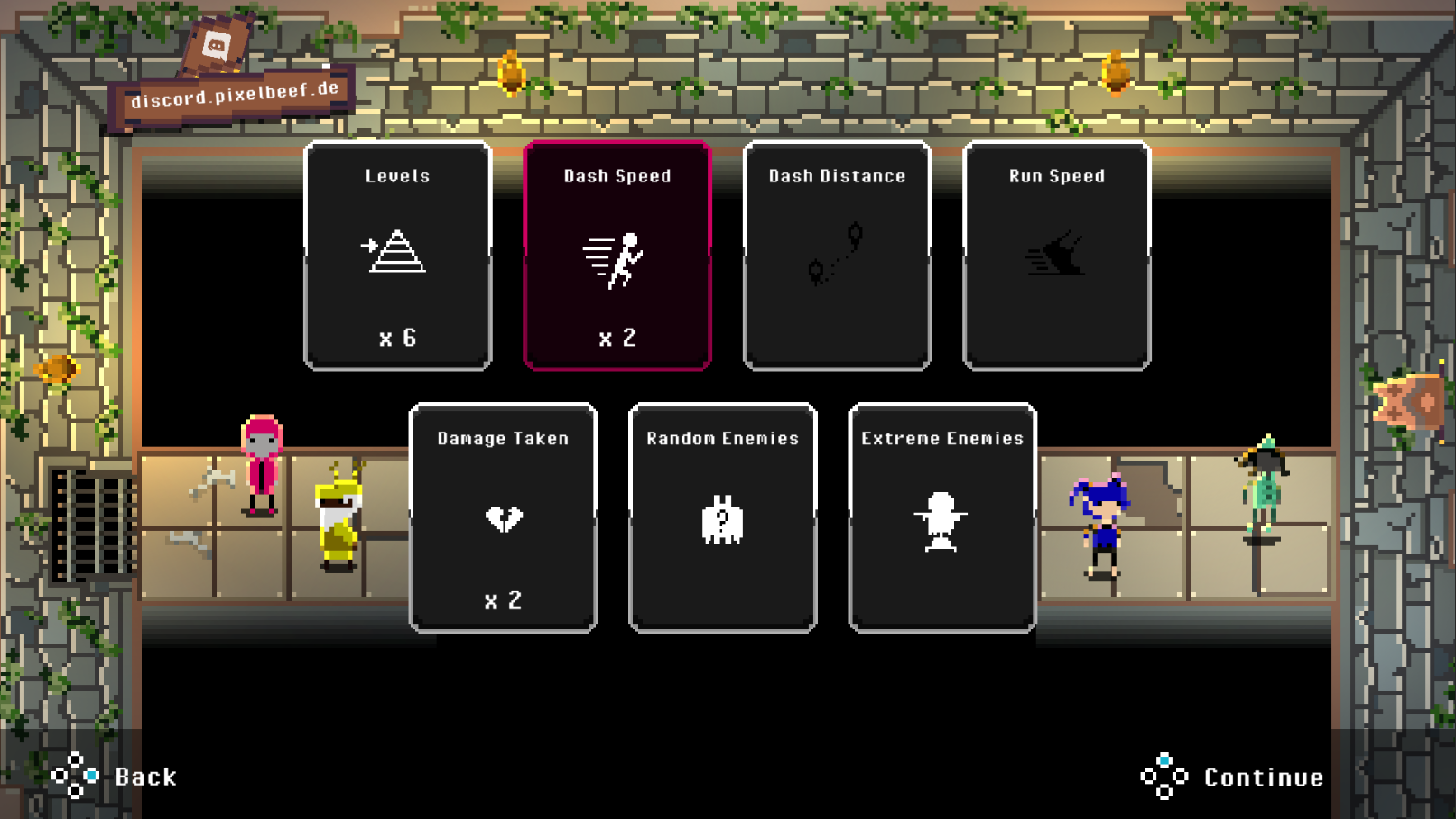 Added Custom Mode. You can set the number of levels per run, dash speed, dash distance, run speed and damage by yourself. It is also possible to randomize enemies.
