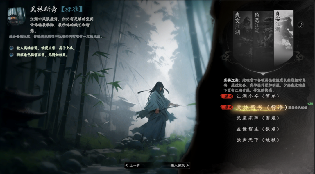 ■ 大侠们可以在难度选择界面选择“真实江湖”进行游戏了