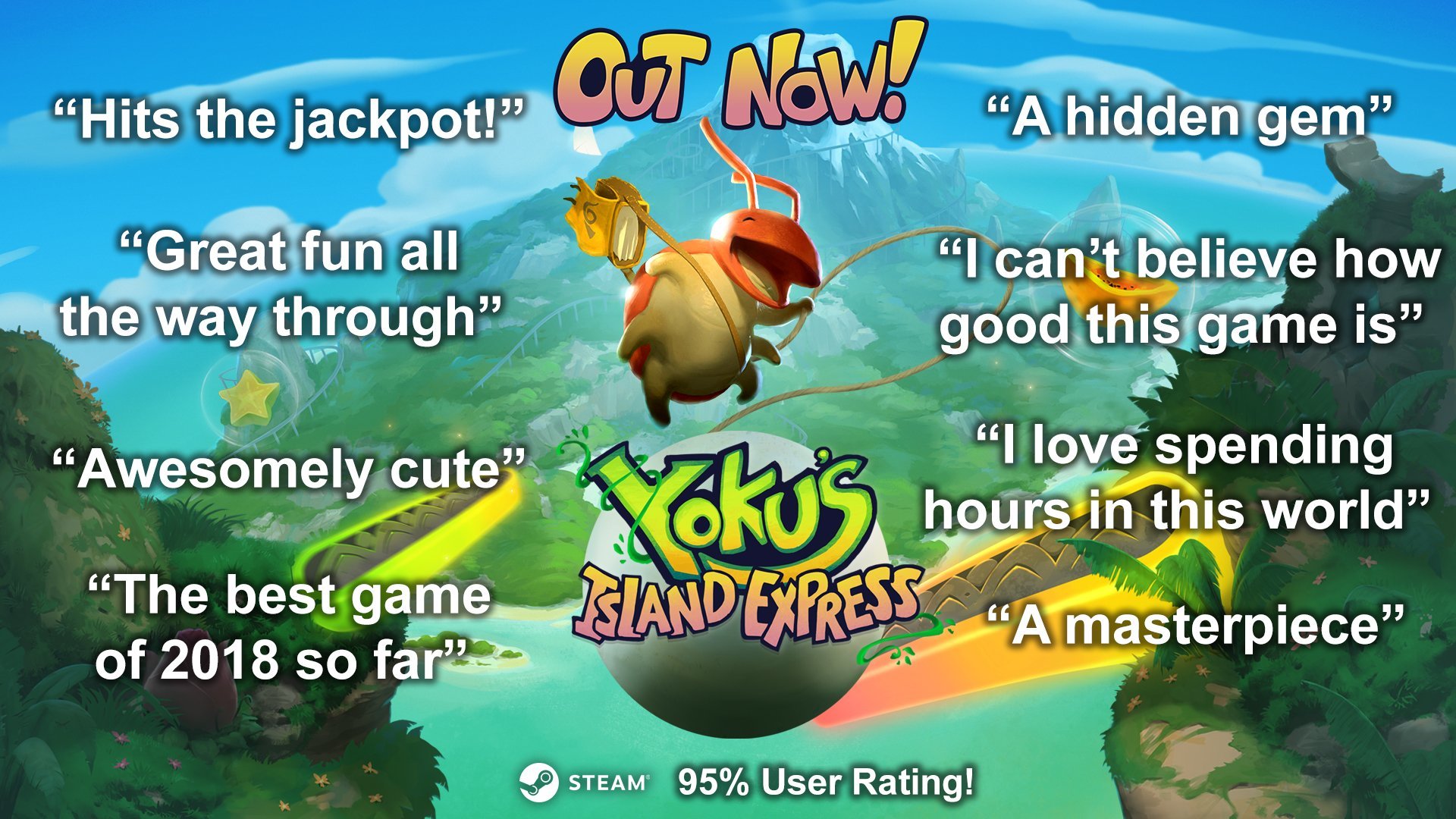 Ever since Yoku's Island Express launched in May we've had a wealth of critical acclaim from journlists and YouTubers but we just wanted to take a moment to thank you the players for being so vocal and positive about Yoku too.