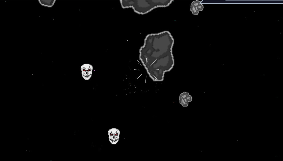 - The skull shots will now explode against all asteroids and blow off small specks of rock and dust when they impact an asteroid.