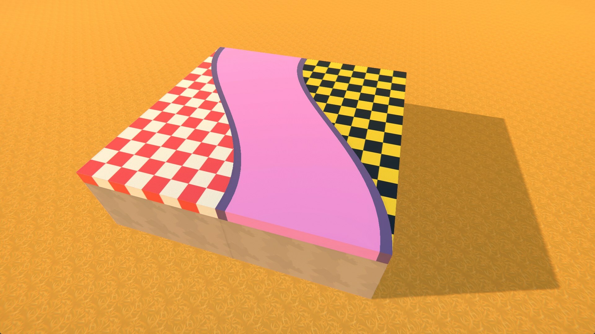 The roads (pink) would fit together with the terrain pieces (checkerboard pattern on the side), but there was an issue: